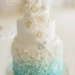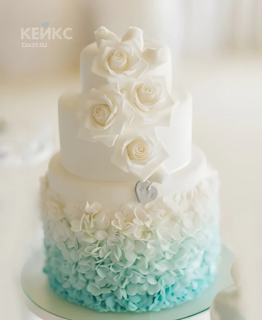 Нежный свадебный торт цвета Тиффани с кружевами и розами