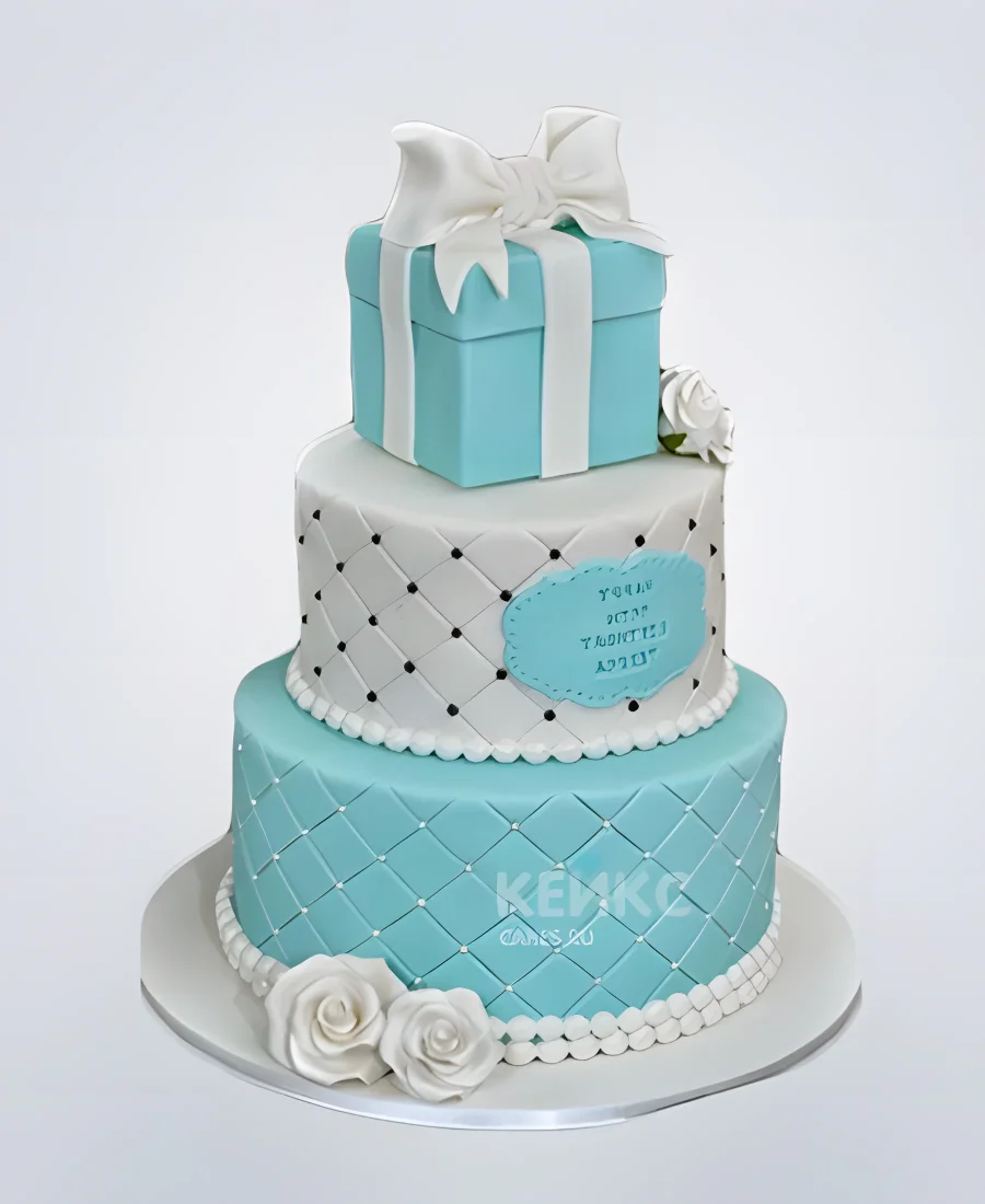 Свадебный торт Тиффани с подарочной коробкой и бантом