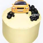 На белоснежном креме лаконично расположились сочные ягоды — малина и голубика создают яркие акценты. Боковая сторона украшена стильной черно-желтой полосой, напоминающей такси. Фотопечать с силуэтом города добавляет урбанистическое настроение, а геометричная композиция из ягод завершает современный образ. Минималистичный подход подчеркивает элегантную простоту и четкость линий.