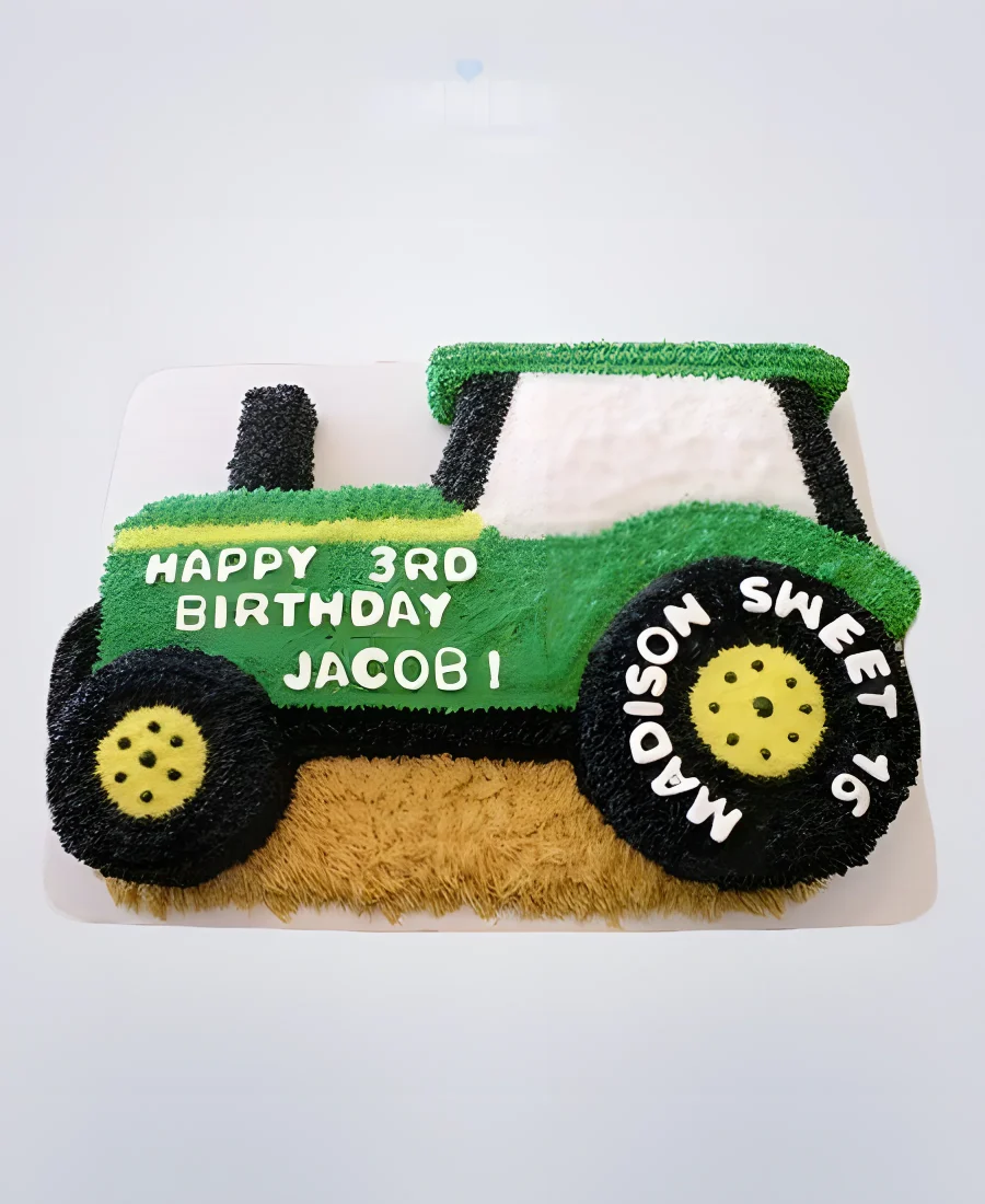 Торт в виде зеленого трактора с надписью