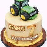 Яркий торт с надписью и фигуркой трактора