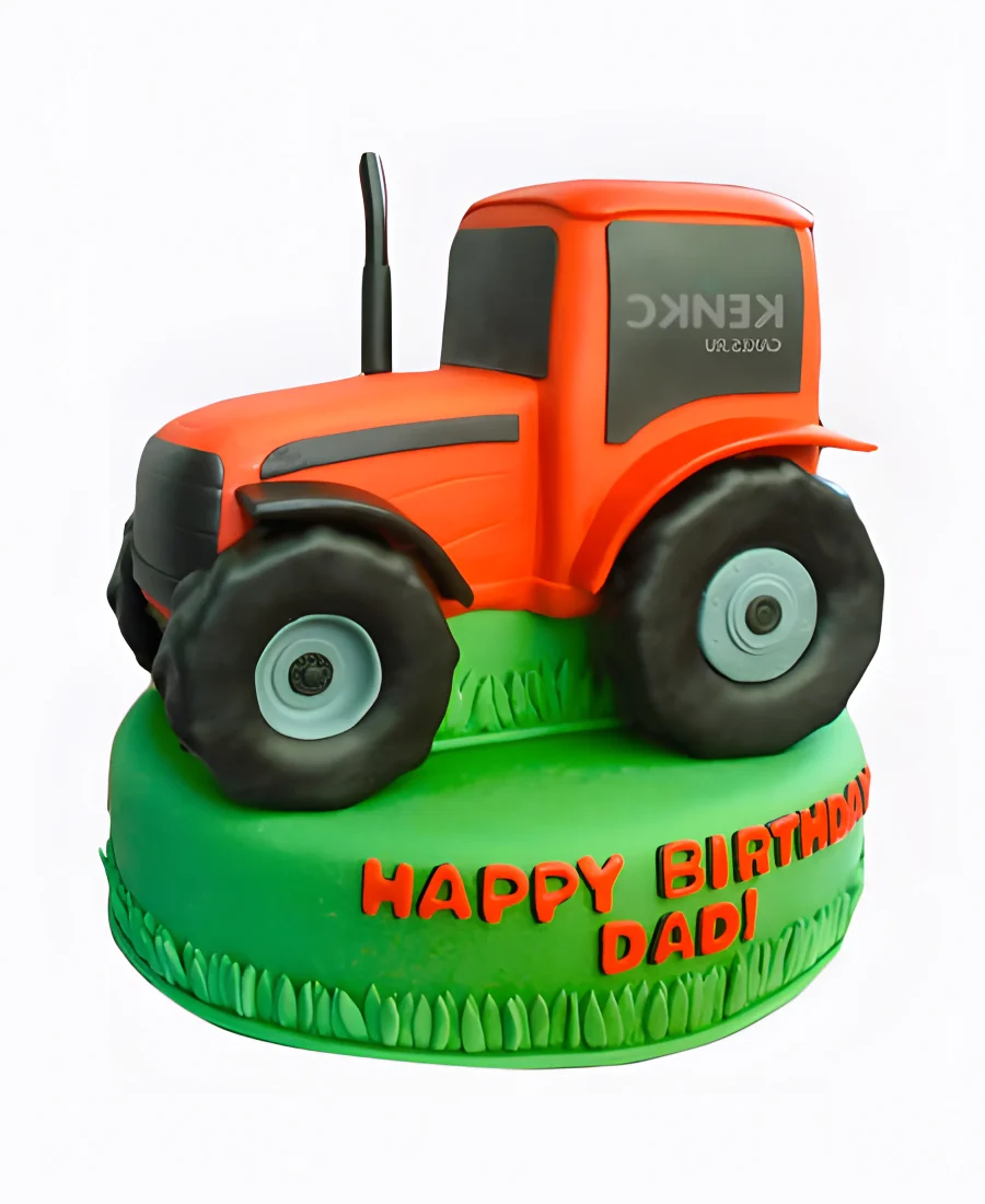Яркий торт с красным трактором