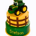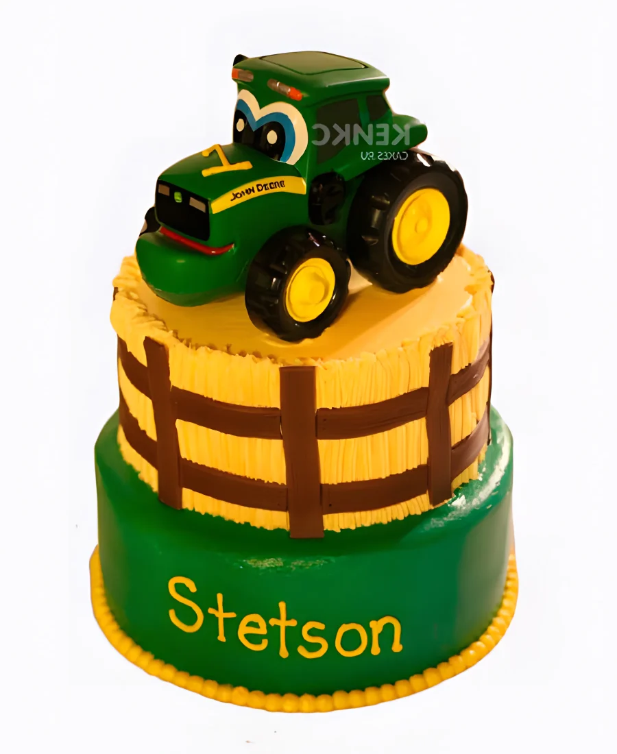 Желто-зеленый торт с трактором