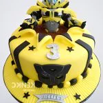Желто-черный торт Трансформеры с фигуркой Бамблби и цифрой