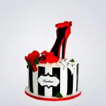 Торт в полоску с красной туфелькой