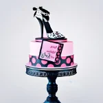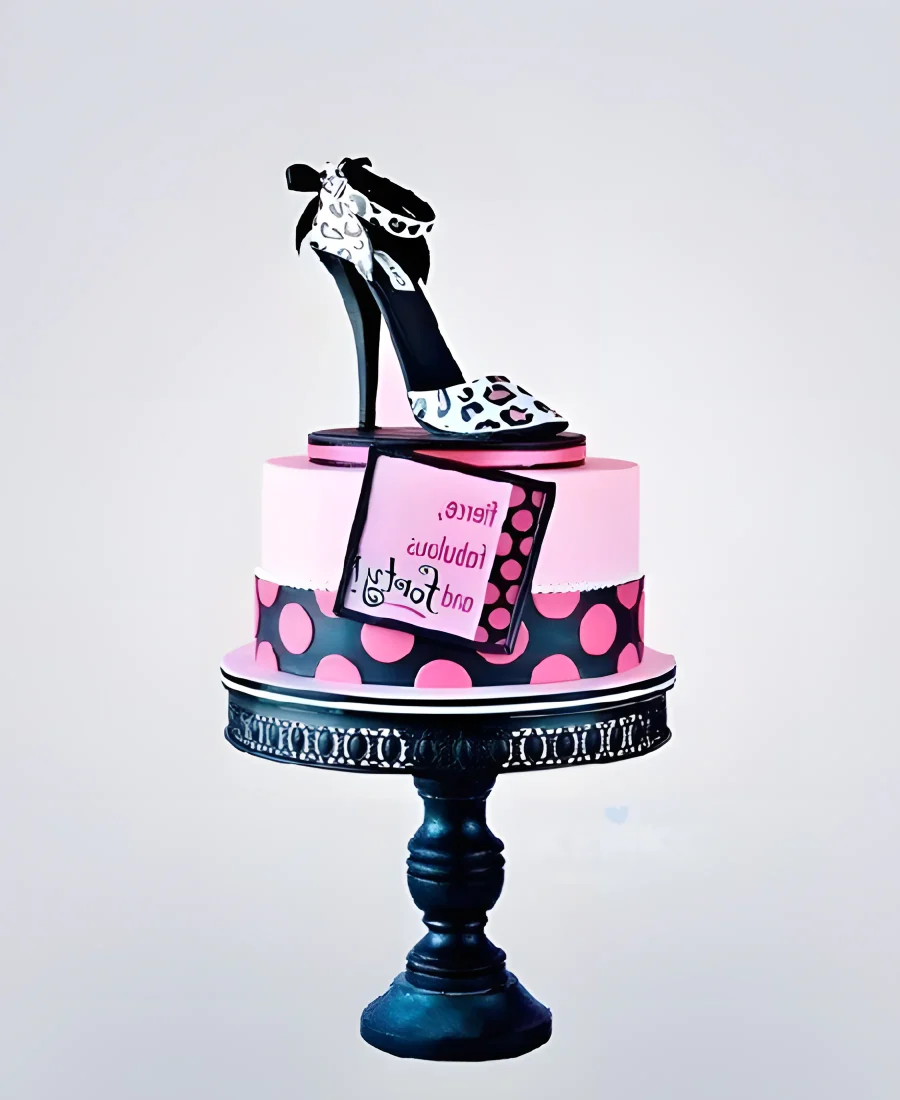 Розовый торт в виде леопардовой Туфельки с открыткой