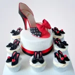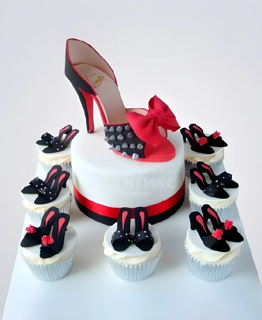 Торт в виде черно-красной Туфельки с красным бантом