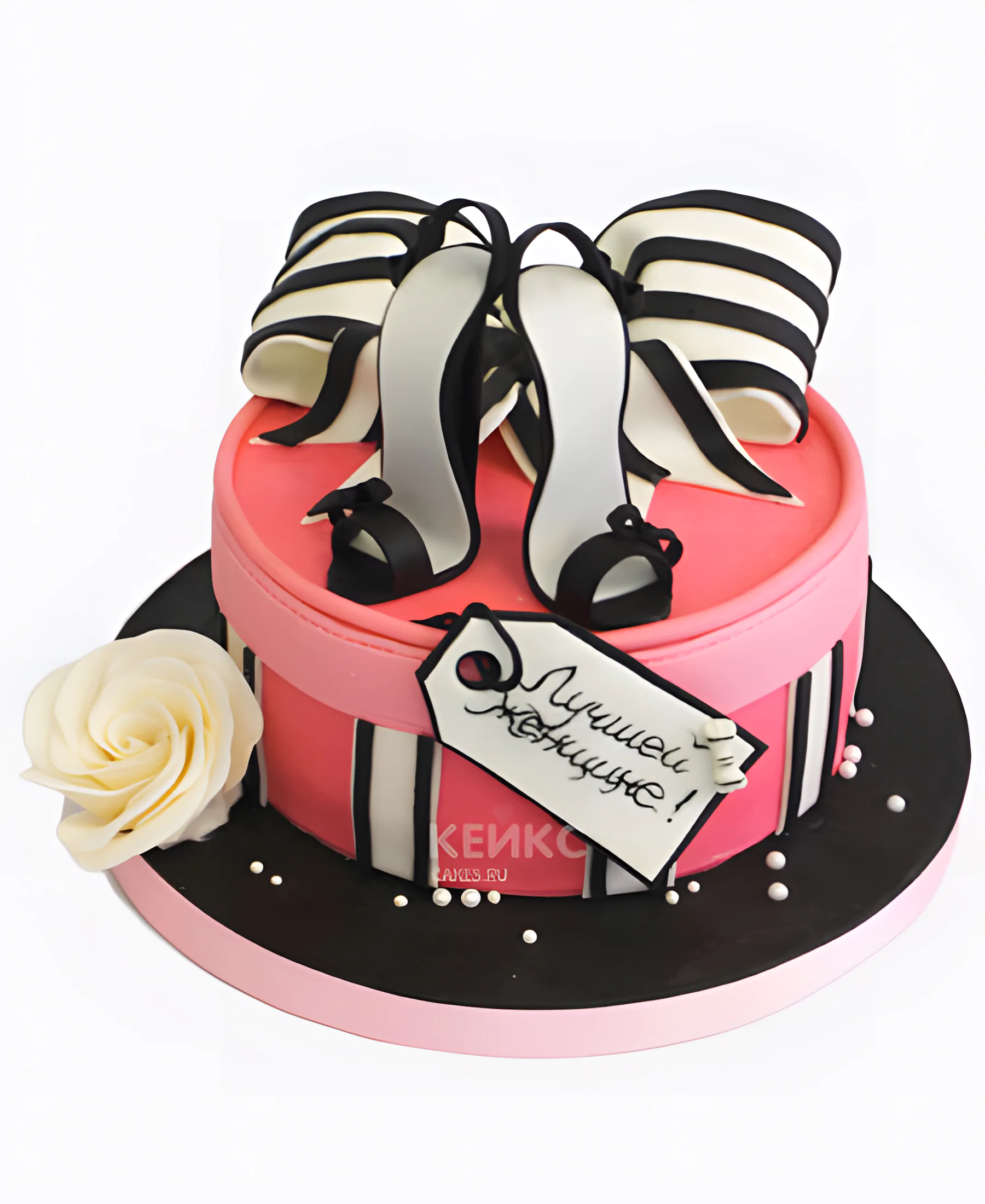 Торт в виде розовой коробки с босоножками