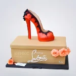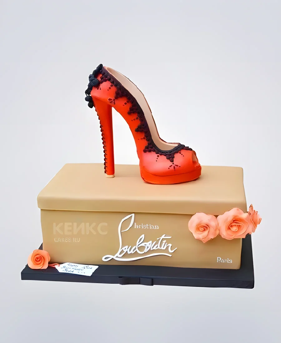 Торт в виде красной туфельки с черными бусинами