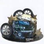 Торт УАЗ с фотопечатью и декором из мастики