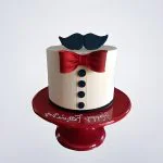 Торт в виде рубашки с бордовым галстуком бабочкой и усами