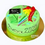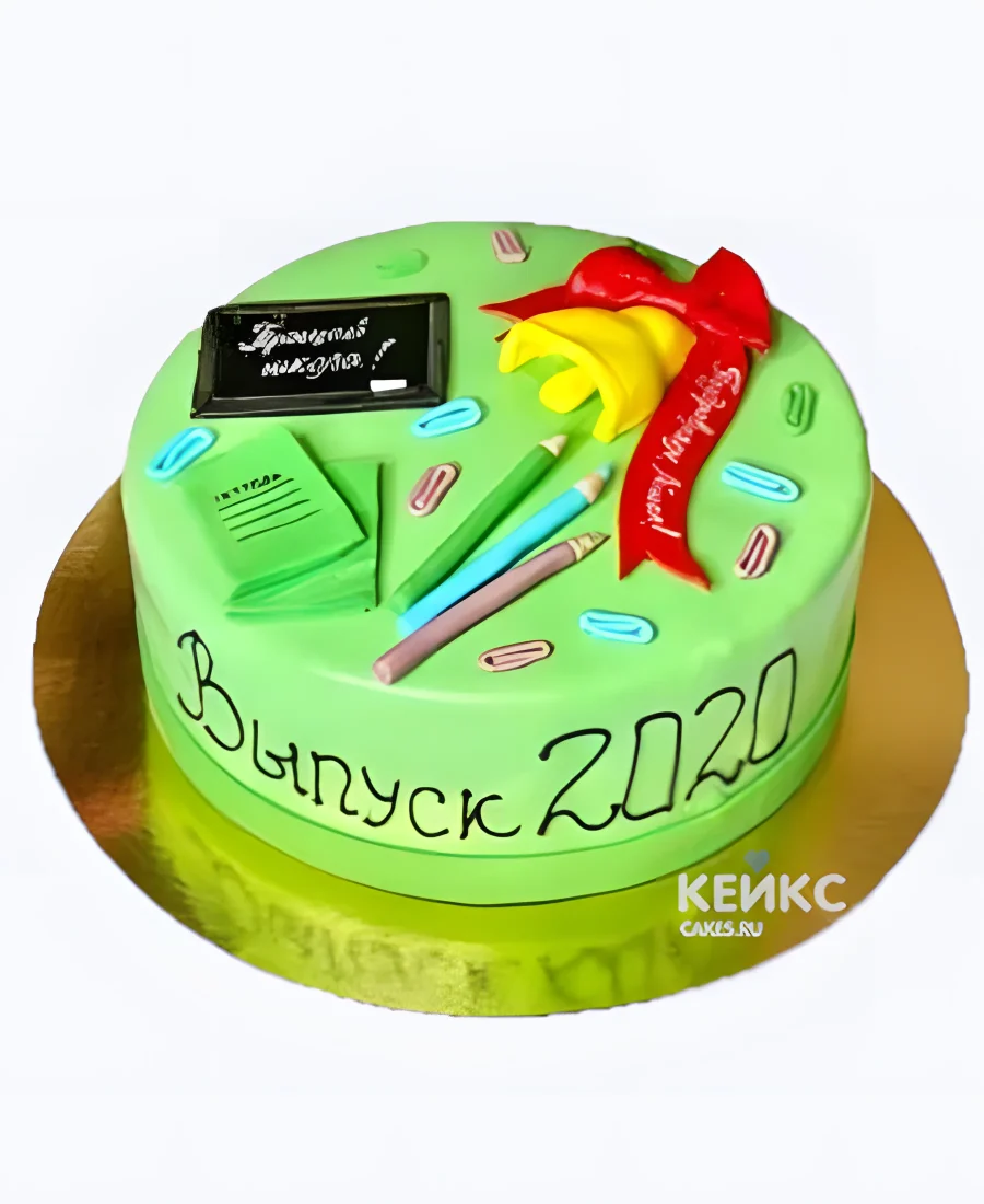 Торт в 11 класс в зеленом цвете со школьными принадлежностями