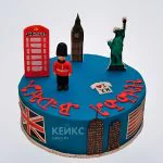 Торт в Английском стиле с фотопечатью флагов и фигурками