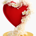 Торт в форме красного сердца с белыми цветами