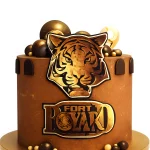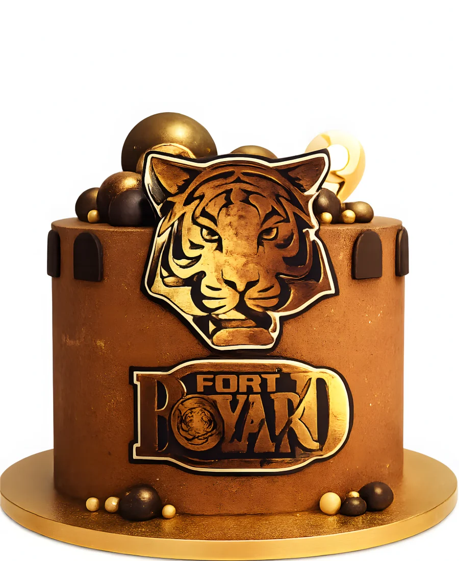 Торт в форме здания и мастичным топпером тигра