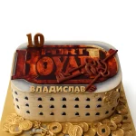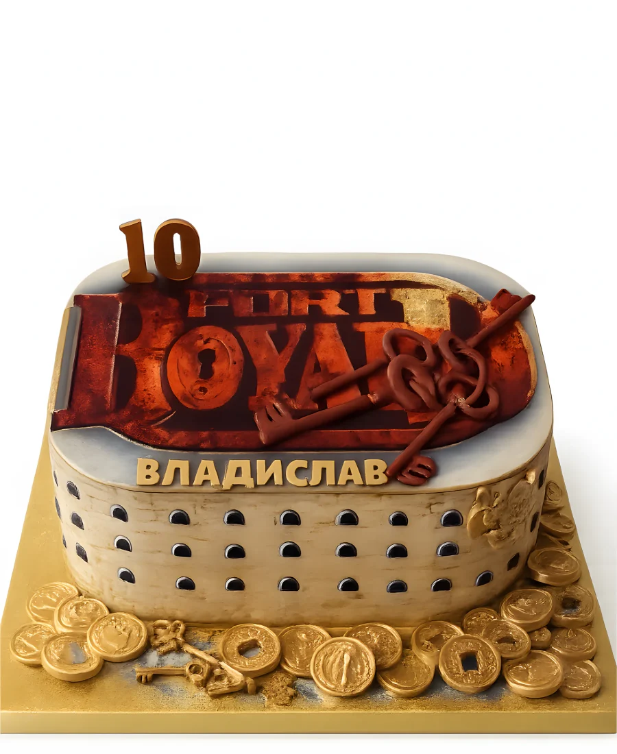 Торт в форме здания и монетами