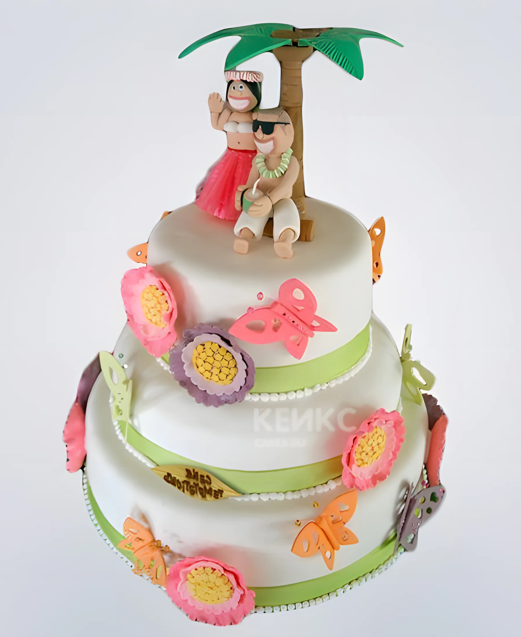 Трехъярусный торт в гавайском стиле с фигурками