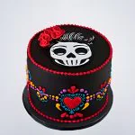 Этот торт — настоящее готическое воплощение. Черная мастика создает эффектную основу, а контрастные белые узоры и алые акценты придают ему загадочный шарм. В центре — стилизованный череп с алым сердцем, окруженный тонкими витиеватыми линиями. Серебристые блики и графичные детали усиливают мистическую атмосферу. Каждый элемент словно рассказывает свою историю, притягивая взгляд глубиной и драматизмом.