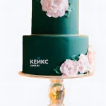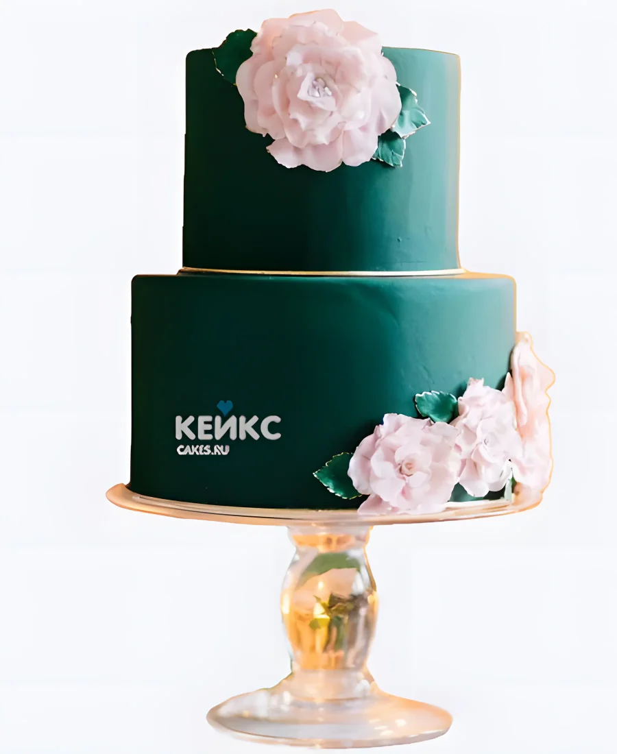 Торт в изумрудном цвете с розовыми пионами