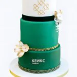 Торт в изумрудном цвете с узорами и цветами