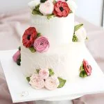 Двухъярусный торт из крема в Корейском стиле с цветами