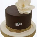 Элегантный круглый торт в теплых коричневых тонах притягивает взгляд своей лаконичной красотой. Нежная мастика создает бархатистую текстуру, а изящные цветы из сахарной пасты добавляют торжественности. Каждый элемент декора продуман до мелочей, создавая гармоничную композицию. Сдержанная цветовая гамма вызывает ощущение уюта и спокойствия, напоминая о теплых осенних днях.