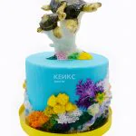 Этот торт переносит в подводный мир с его волшебной атмосферой. Голубая мастика имитирует морскую гладь, а объемные коралловые рифы и морские звезды создают эффект настоящего дна. В центре композиции — забавная черепаха, будто только что всплывшая из глубины. Переливы синих оттенков, песочные тона и яркие акценты делают торт живым и динамичным. Каждая деталь продумана до мелочей, создавая ощущение маленького океана на столе.