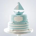 Голубой полосатый торт с корабликом и канатами