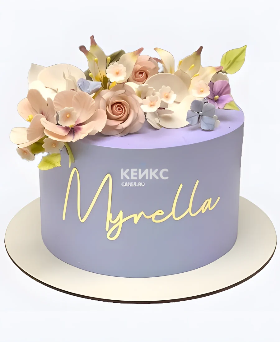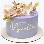 Торт в пурпурном нежном цвете на 35 лет с цветами