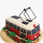 Торт в стиле красно-белого трамвая