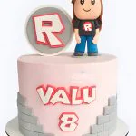 Торт в стиле Роблокс нежно-розовый с девочкой