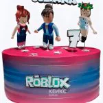 Торт в стиле Роблокс розово-синий со звездами и девочками