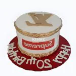 Этот элегантный белоснежный торт выглядит как произведение современного искусства. Гладкая матовая поверхность мастики создаёт эффект холста, на котором золотой знак смотрится особенно выразительно. Минималистичный дизайн с чёткими линиями и контрастом белого с золотым придаёт торту стильный и лаконичный вид. Такой десерт станет прекрасным дополнением к любому торжеству, добавляя ноту утончённости и изысканности.