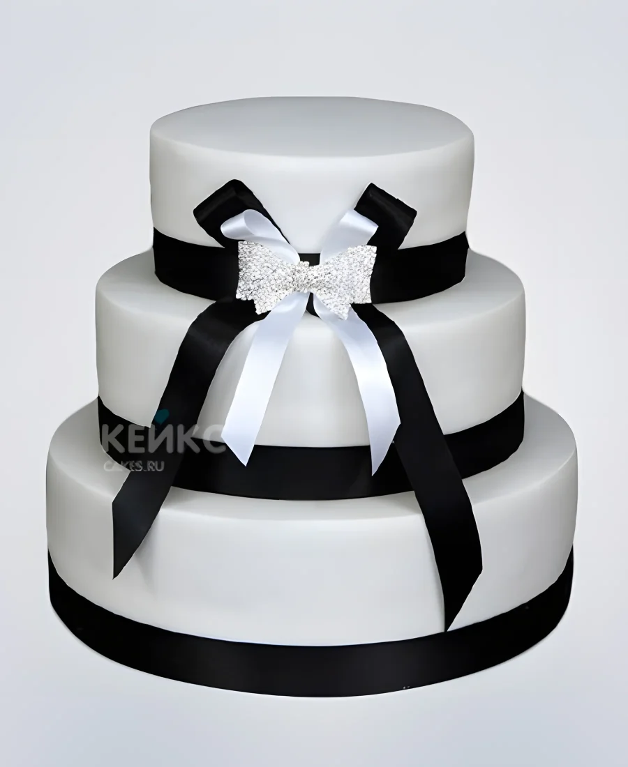 Торт в строгом стиле с черно белым бантом