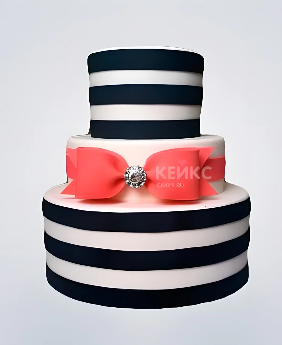 Торт в строгом стиле с розовым бантом