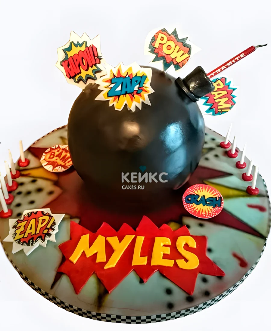 Торт в виде бомбы с надписями