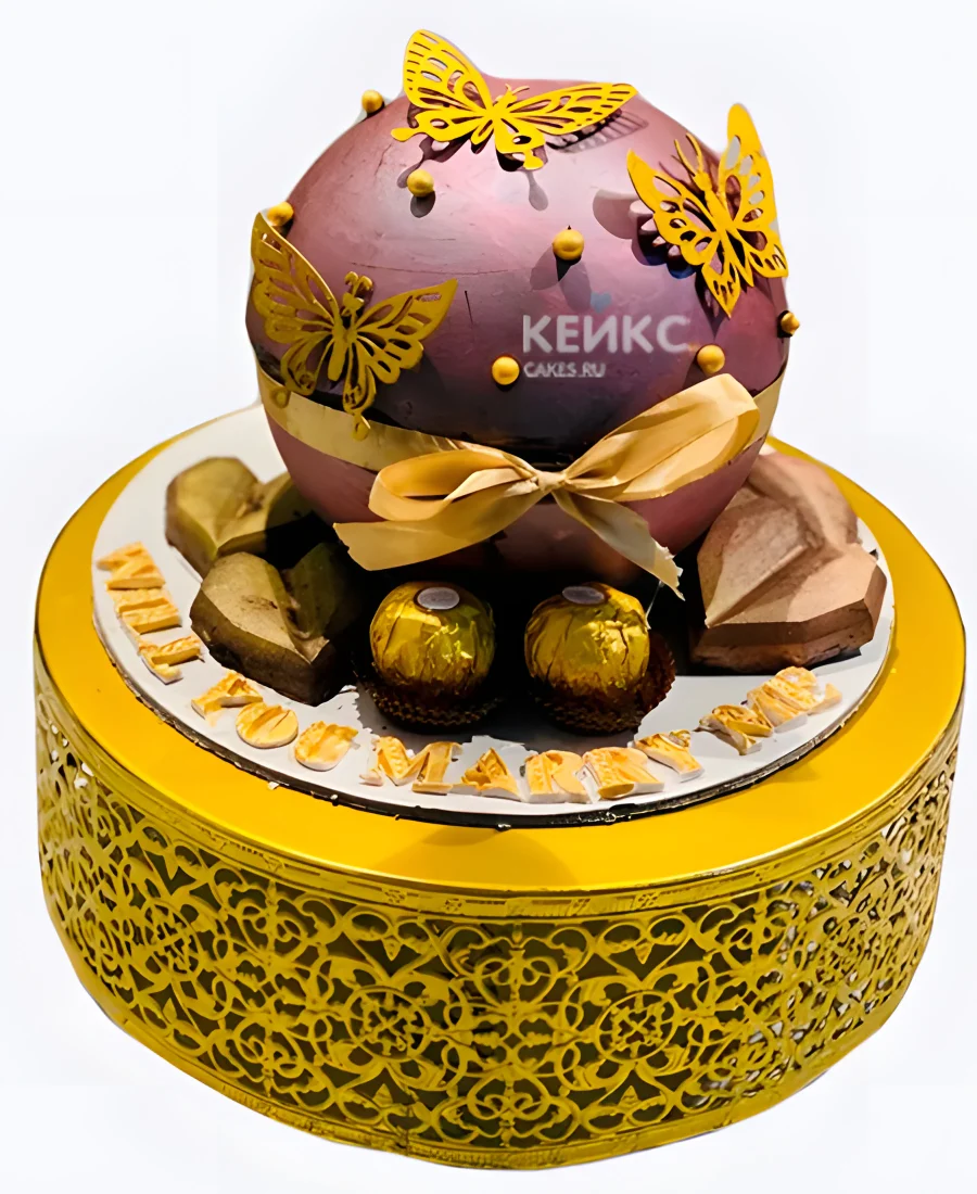 Торт в виде бомбы с золотыми бабочками и конфетами