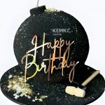 Взрывная форма торта моментально привлекает внимание. Глубокий бархатный черный цвет создает эффектный контраст с россыпью золотых блесток, которые мерцают при каждом движении. Динамичная композиция напоминает фейерверк в ночном небе, создавая ощущение праздника и волшебства. Аппликация добавляет объем и завершает дерзкий образ.