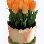 Торт в виде горшка с оранжевыми тюльпанами