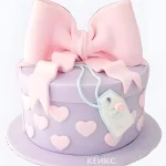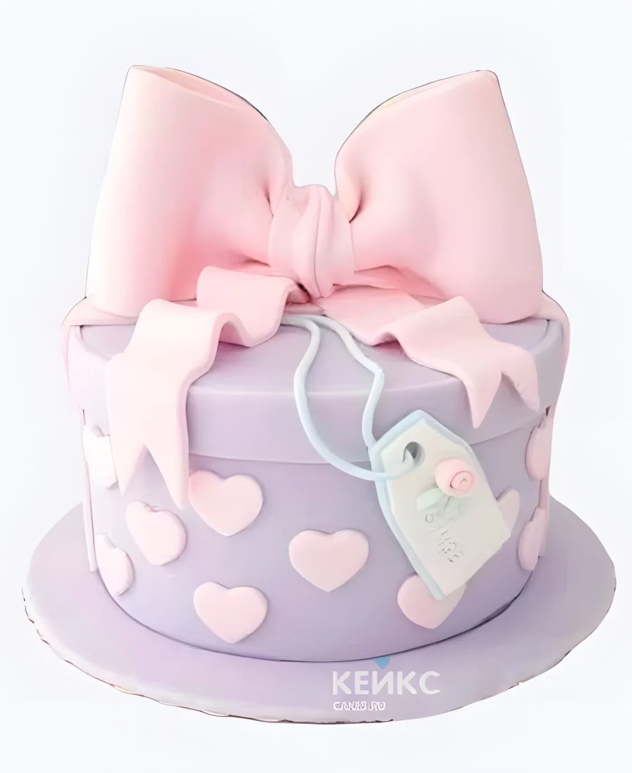 Торт в виде коробки с сердечками и бантом
