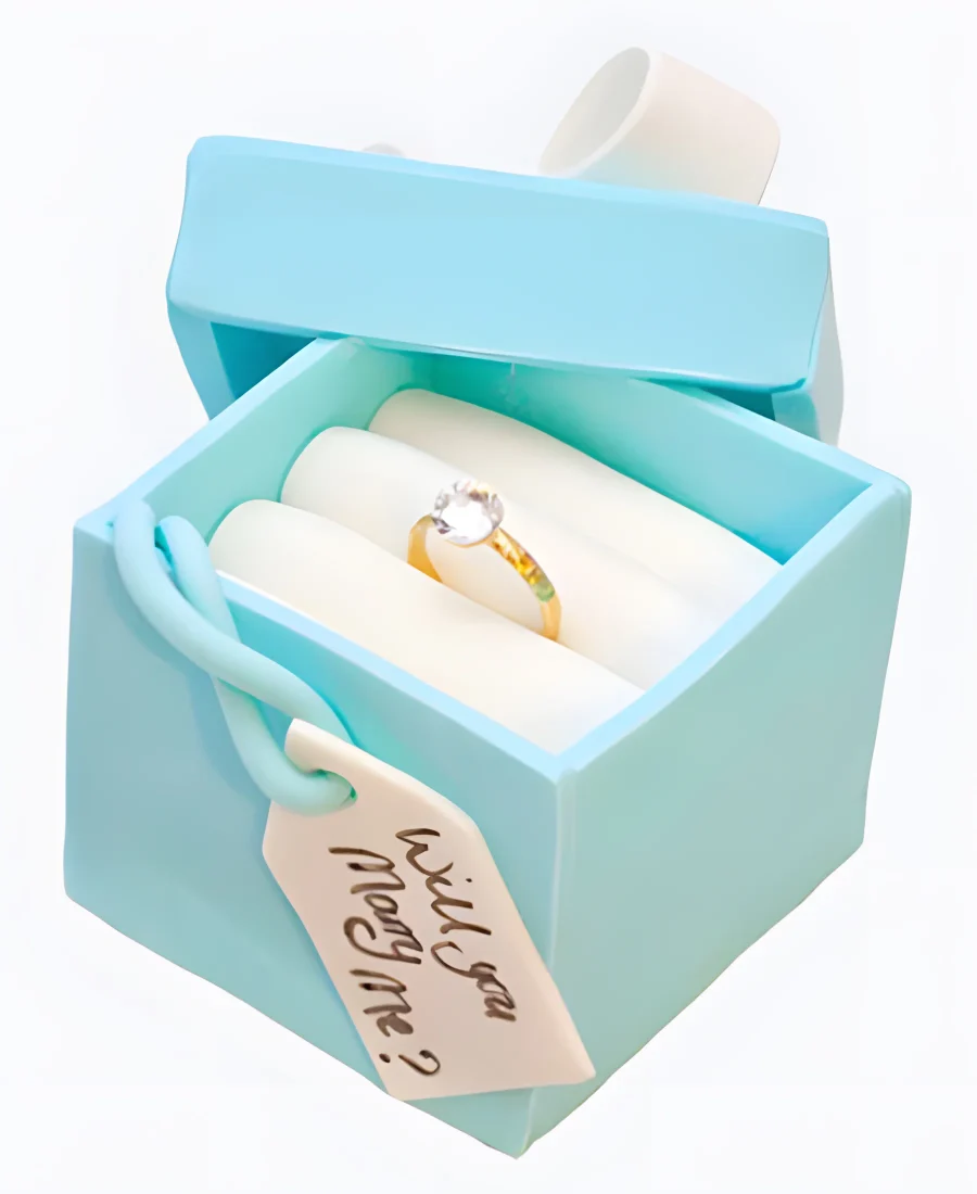 Торт в виде коробочки с кольцом на сватовство