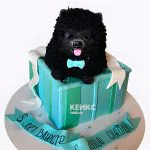 Торт в виде подарочной коробки с черным шпицем