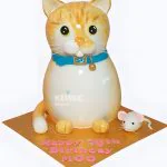 Торт в виде рыжего котика с мышкой