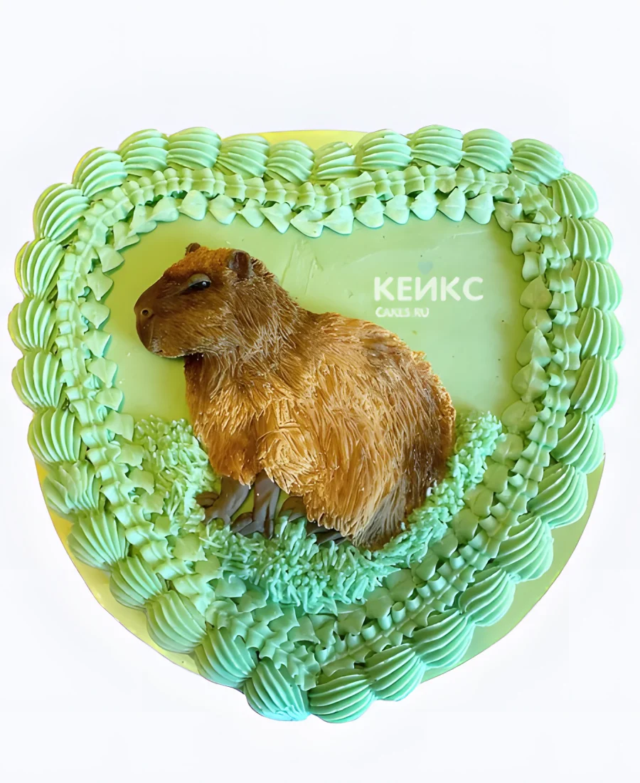 Торт в виде сердца с капибарой