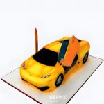 Торт в виде яркой желтой ламборгини
