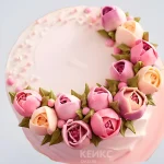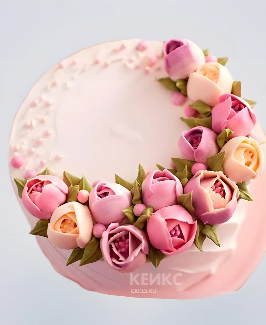 Розовый торт в весеннем оформлении