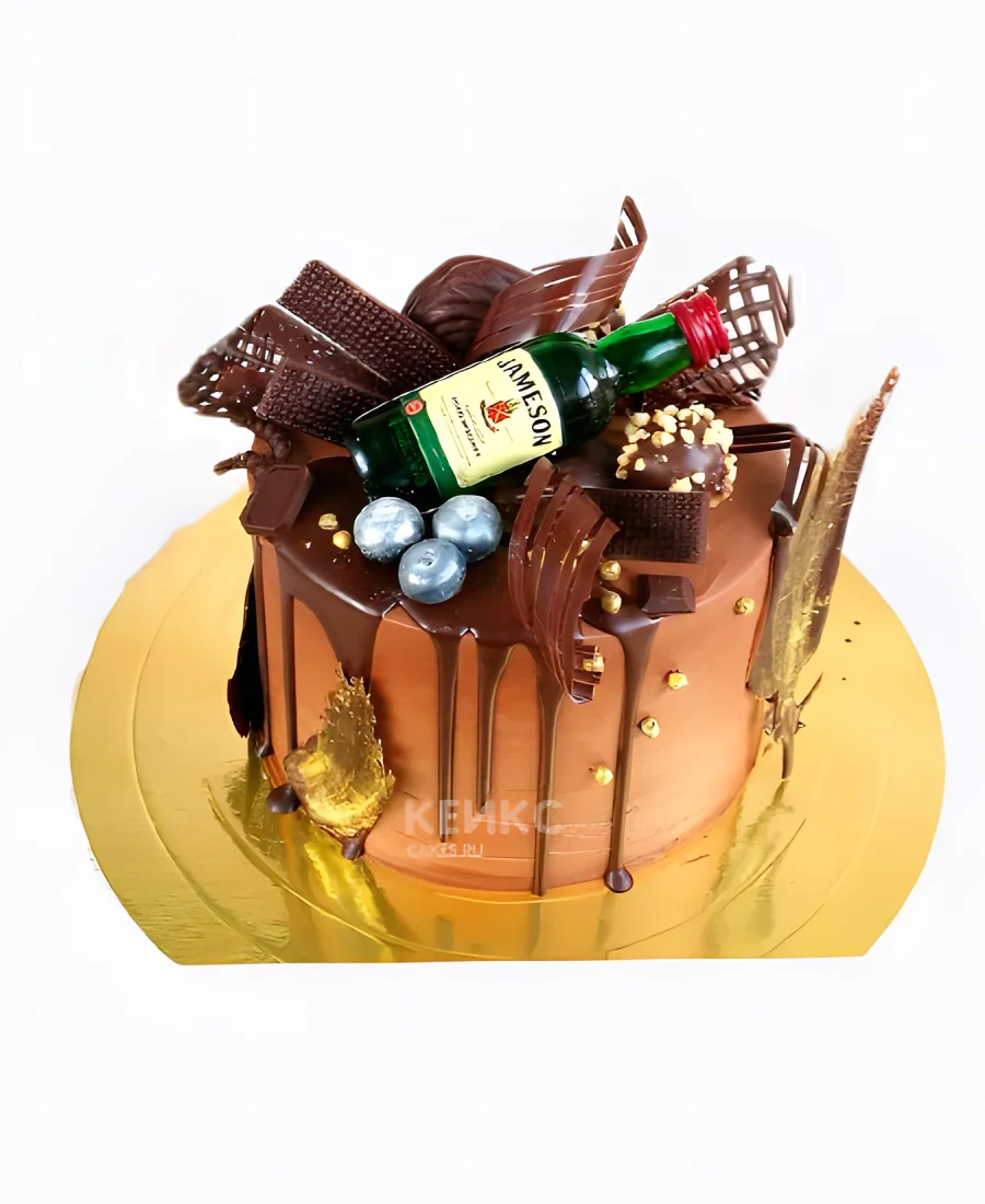 Торт виски с конфетами и шоколадными подтеками