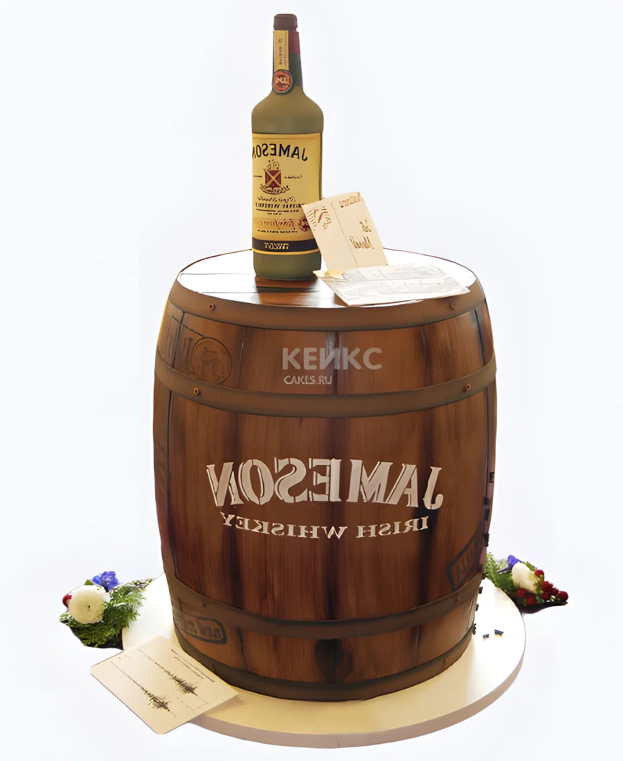 Торт виски с цветами из мастики
