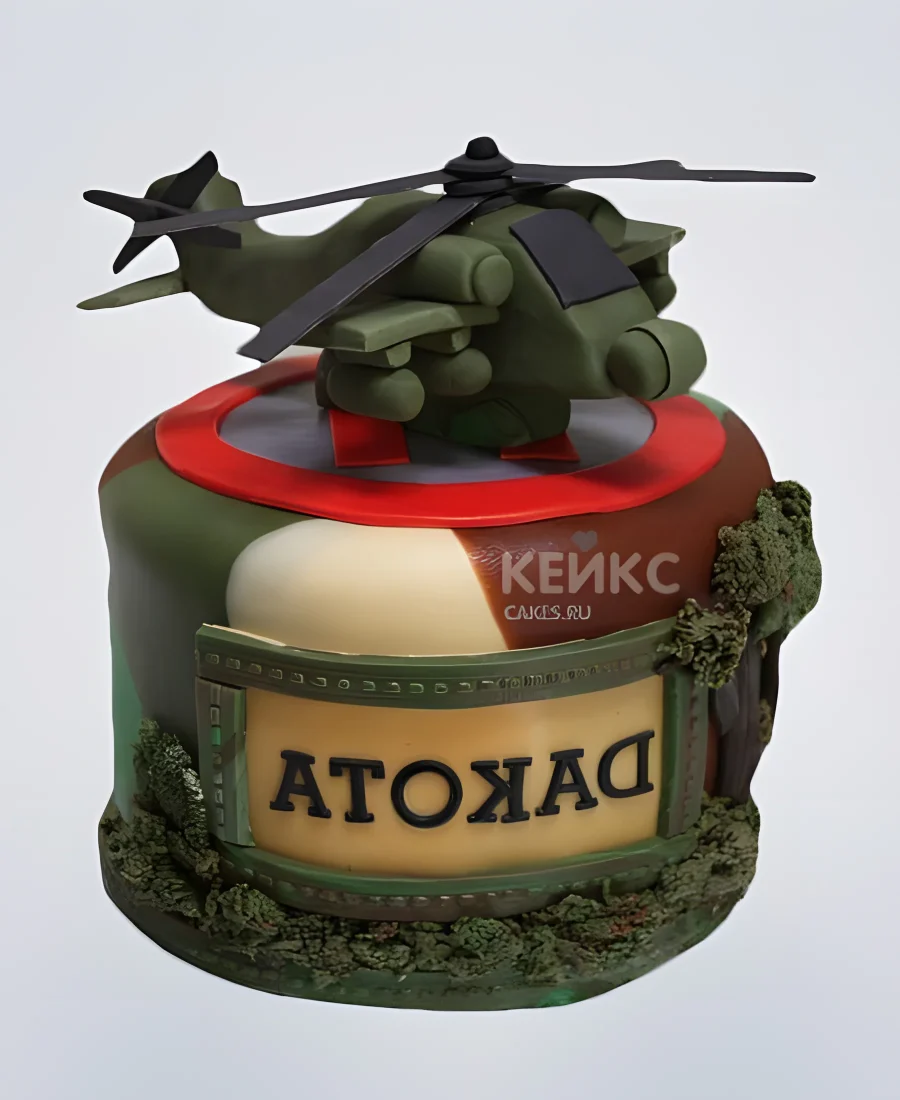 Торт с надписью и военным самолетом