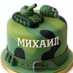 Торт с фигуркой танка и гранаты в стиле хаки